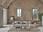 компактные формы контрастируют с мягкостью обивки и широким и удобным сиденьем. Металлическая деталь по всей длине у основания диван - драгоценная деталь от современный стиль.