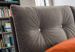 Scotty представлено с двумя большими подушками в формате изголовья. Контрастная кромка однозначно обладает сильным эстетическим эффектом: она очерчивает края подушек и структуру кровати, воссоздавая живую стилистическую деталь кроя.