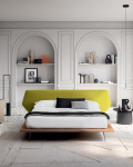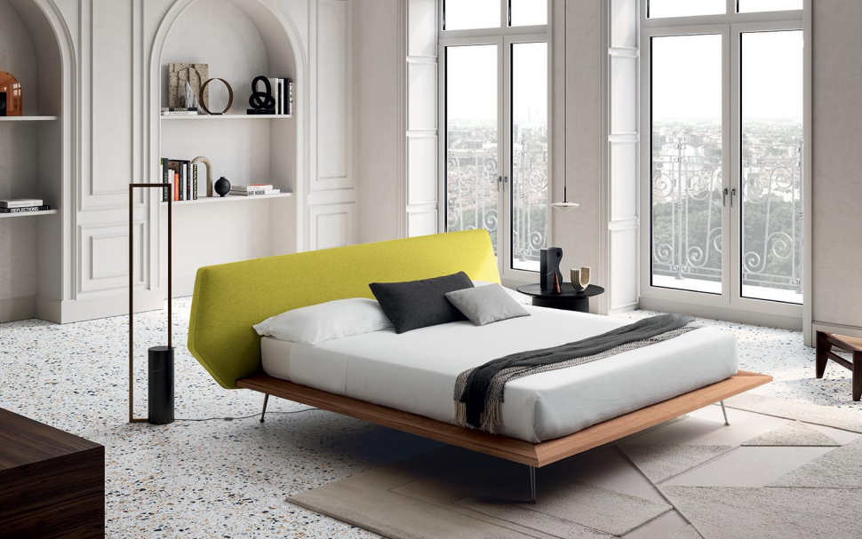 Oriental hints in the headboard design inspired by the iconic Taiwanese skyscraper Taipei 101 and in the milled wood evoking bamboo. On Taipei it is easy to indulge to far dreams. The particular design of the feet is inspired by the form of the bamboo section and are available in four color variants: brass, carbon look, copper and chrome.