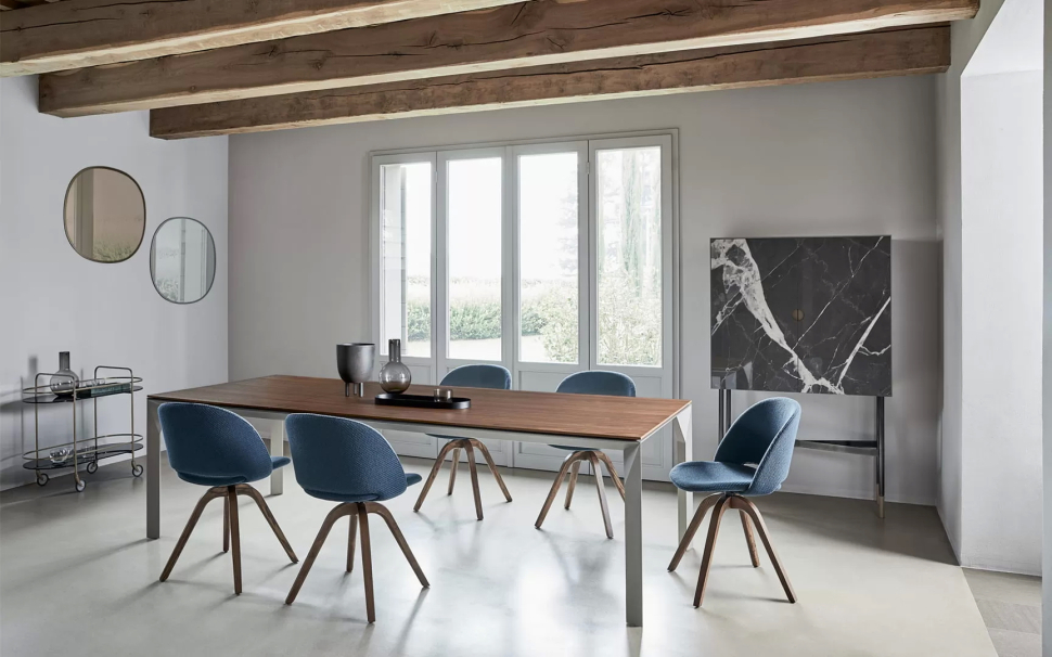 Стол раскладной и нераскладной из лакированного алюминия. Столешница из стекла, СуперКерамики или СуперМрамора.