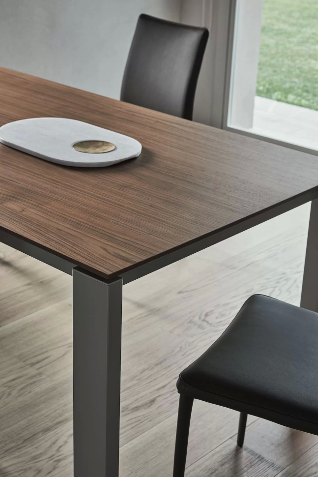 стол раскладной со структурой из лакированной стали. cтолешница из меламина, шпона, глянцевого стекла, стекла устойчивого к царапинам, суперкерамики и супермрамора.