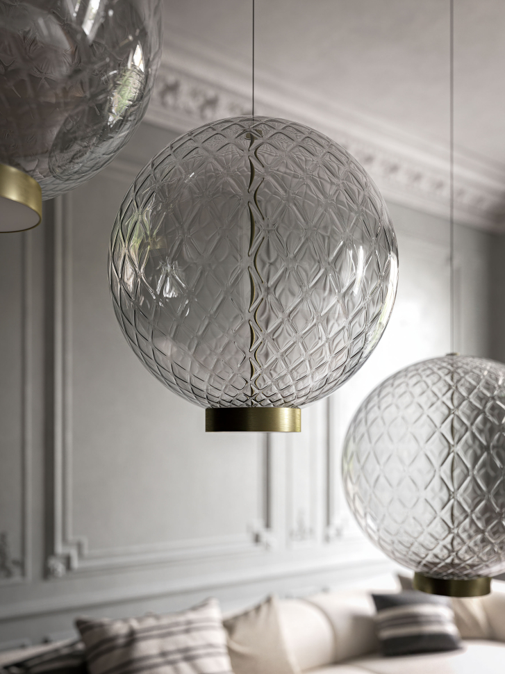 Лампа из дутого стекла Ohay сделана с применением древнего метода Balloton, типичного для ремесленных традиций мастеров-стекольщиков из Мурано. Сфера лампы Ohay характеризуется трехмерным поперечным ромбовидным рисунком, полученным из металлической формы. Наконечники, содержащиеся внутри формы, в результате выдувания формируют расплавленное стекло и реализуют типичный граненый эффект обработки balloton. Оптический эффект - впечатляет, еще больше подчеркнутый оттенками дымчатого кристалла. Свет отражается между регулярными вкраплениями и возвращает мягкий и нежный эффект.Край абажура обернут металлическим кольцом, которое, кажется, хочет крепко удерживать воздушный шар, готовый к полету. В этом и заключается величие ручной обработки стекла, способного сделать его легким и придать холодному и жесткому материалу душу.